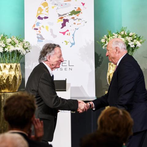 Abel Prize laureate Dennis Sullivan receives the Abel Prize from His Majesty, King Harald of Norway.
