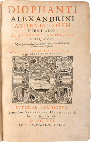 Manuscript by Diophantos of Alexandria (ca. 200-284 BCE), translated from Greek to Latin by Claude Gaspard Bachet de Méziriac. Book edition from 1621. (Public Domain / Commons Wikipedia). This file has been identified as being free of known restrictions under copyright law, including all related and neighboring rights.